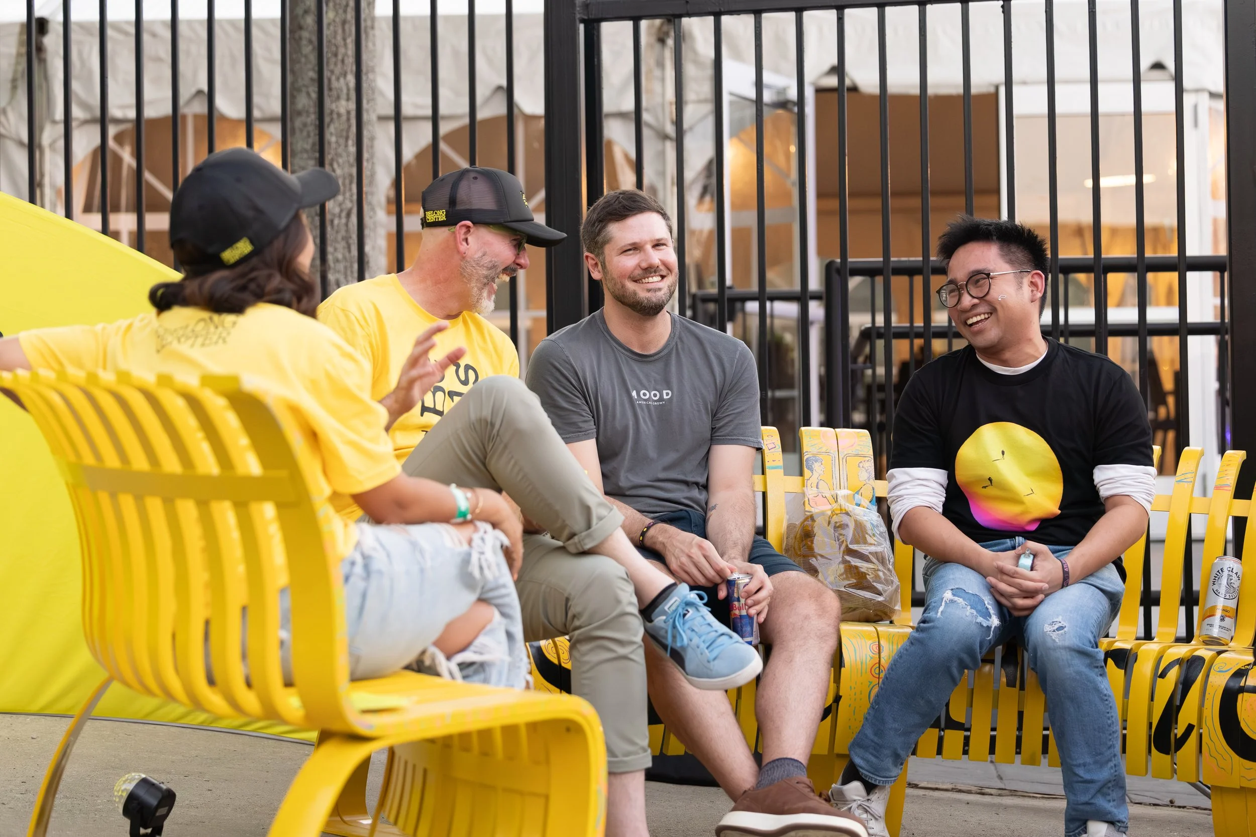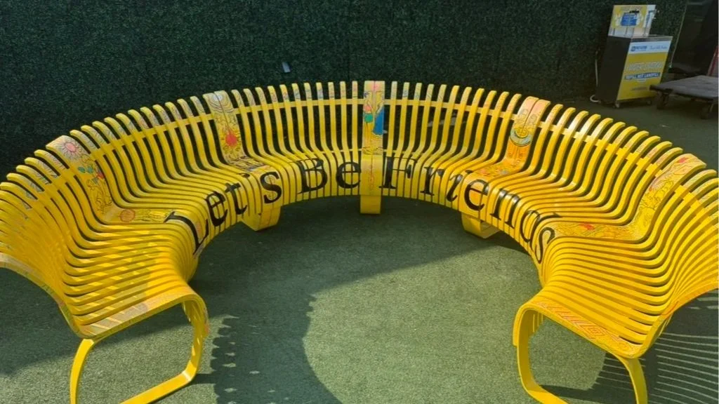 The Belong Bench is an interactive, connection inspiring installation. A living third space that calls community into connection + presence, created in collaboration with artist Anthony Fatato and Belong Center. The Belong Bench recently toured with electronic music band, Above & Beyond on their US tour sparking connection for music lovers nationwide.